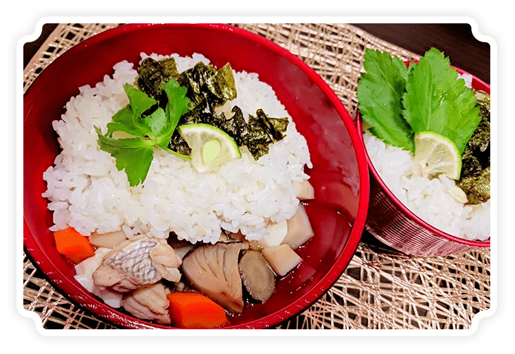江戸時代の倹約政治の中で、贅沢な食材をご飯に埋めて隠しながら食べたとのこと。どのような世でも庶民のささやかな願いは隠れた中で広まっていくのでしょう。そしてこのユニークな料理を、鯛の下味などの調味にうま味調味料を活用して、なんと69%も減塩。これは専門家から見ても驚異的な減塩率です。