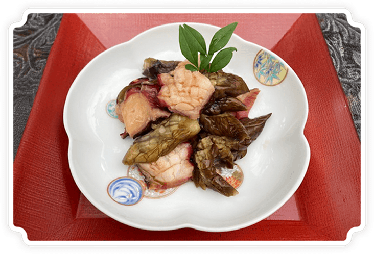 なすの電子レンジ加熱や、たこと相性のよいオリーブ油の使用など、食材に適した現代的なアレンジを加えている点に感心し、また、たこの生臭み、実山椒の辛み、なすのえぐ味に対して、調理の簡素化並びにマスキングとしてうま味調理料を使用した点は大いに新鮮味と工夫があり、審査会でも高く評価されました。