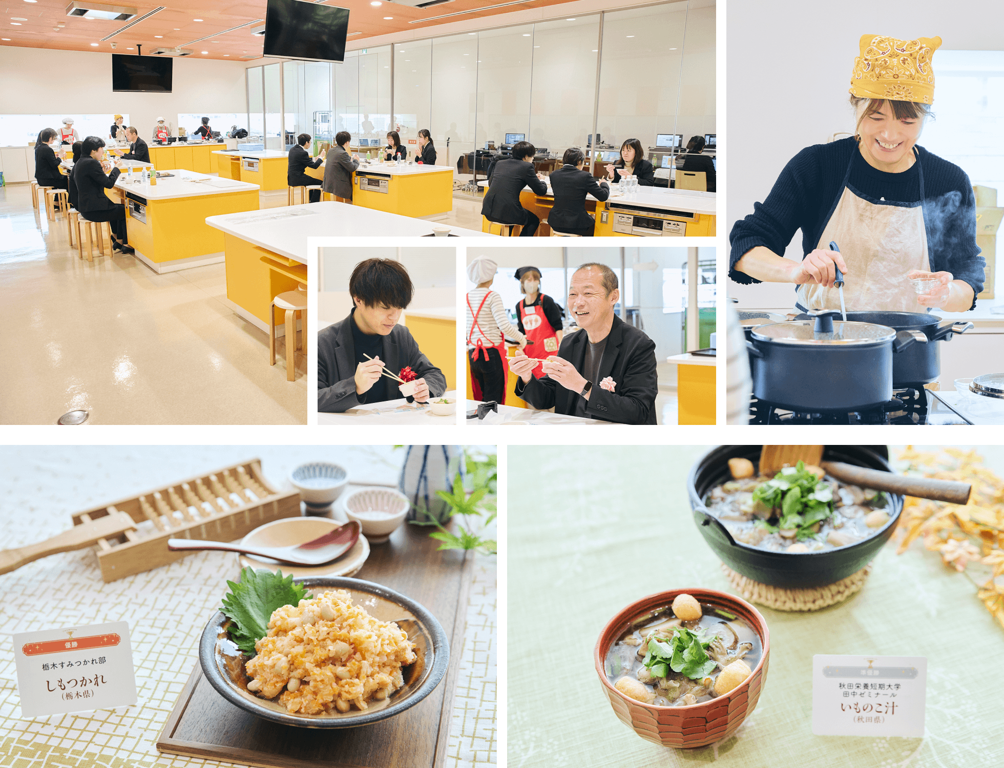 | 上部写真 下列左より: | 優勝チーム「栃木すみつかれ部」の皆様、準優勝賞チーム「秋田栄養短期大学 田中ゼミナール」の皆様 |