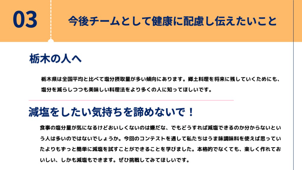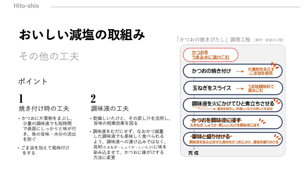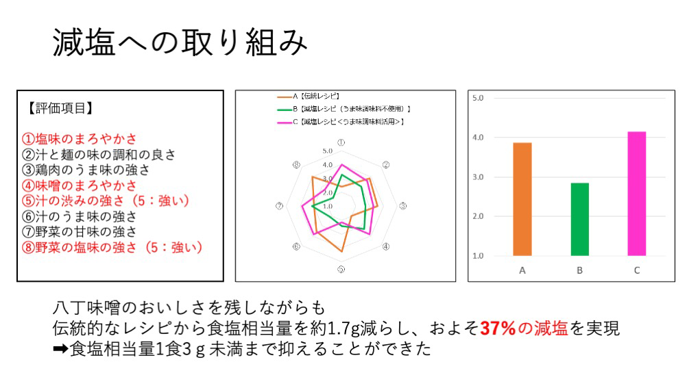 そして、考案された「おいしい減塩のための工夫」が普段の食生活の改善にも活かされるよう、