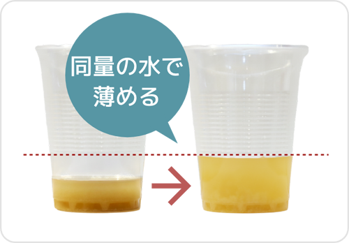 残ったみそ湯とほぼ同量の水を、残ったみそ湯に加えます。