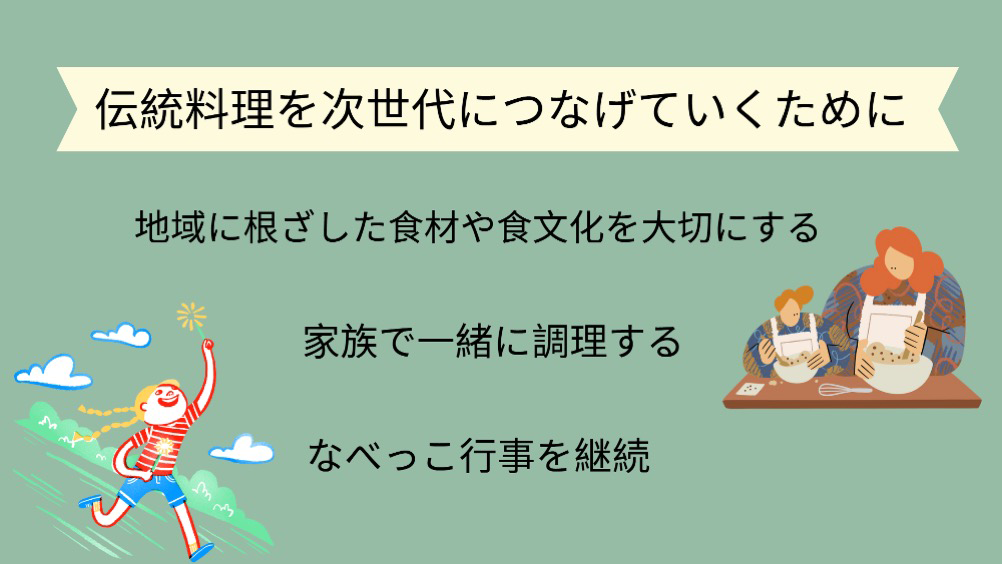 若い世代や子どもたちにも親しんでもらい、家庭で簡単に作って食べられるようにという思いが込められていました。それが今後もうまく広がっていくことを願っています。