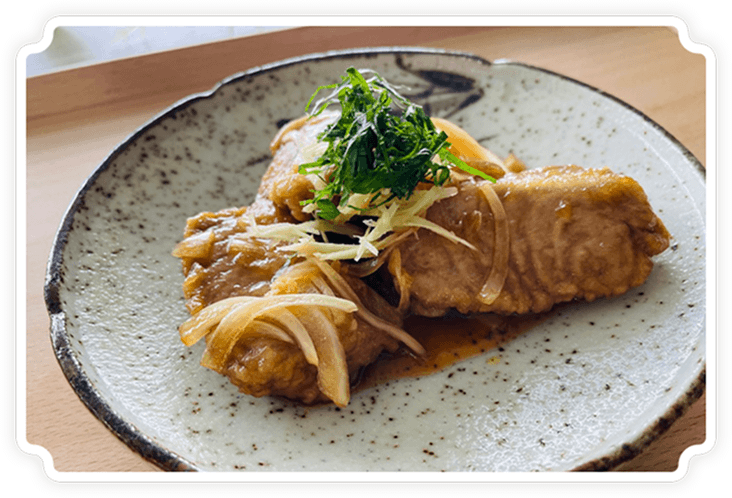 なすの電子レンジ加熱や、たこと相性のよいオリーブ油の使用など、食材に適した現代的なアレンジを加えている点に感心し、また、たこの生臭み、実山椒の辛み、なすのえぐ味に対して、調理の簡素化並びにマスキングとしてうま味調理料を使用した点は大いに新鮮味と工夫があり、審査会でも高く評価されました。