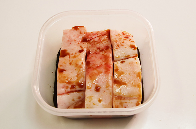 トップ レシピ〜うま味の活用〜 レンジでチャーシュー テーマ 時短・簡単、主菜 2020年06月08日 UP レンジでチャーシュー 爆速でおいしいレシピ 豚バラ肉 リュウジ ●リュウジさん考案 うま味調味料の活用術 うま味の力で、レンジでもおいしいチャーシューができちゃいます! 材料4人分 豚バラ肉ブロック 400g 〈A〉 しょうゆ 大さじ3 酒 大さじ1 みりん 大さじ1 うま味調味料 3ふり うま味調味料ってなんだろう? 作り方 耐熱容器に豚バラ肉、<A>を入れ、ラップをふんわりとかけて、600Wの電子レンジで5分加熱する。 肉をひっくり返して、更に電子レンジで5分加熱する。 うま味応援団 料理家紹介 リュウジさん プロフィール・メッセージはこちら リュウジさん のレシピをもっと見る 関連レシピ 【夏に食べたい うま冷やし茶漬け】 五十嵐ゆかりさん考案 【大さじ3の油で揚げずに簡単 ちくわのうま磯辺揚げ】 五十嵐ゆかりさん考案 【鶏肉全部これで食べたくなる美味しさなうまチキ】 五十嵐ゆかりさん考案 【舞茸のうまだれ唐揚げ】 五十嵐ゆかりさん考案 【野菜が美味しく食べられる うま豆腐クリーム】 五十嵐ゆかりさん考案 【なすのうまだれ豚バラ巻き】 五十嵐ゆかりさん考案 【うまパンコントマテ】 五十嵐ゆかりさん考案 【うま味調味料の働きでナスの美味しさが引き立つ】 五十嵐ゆかりさん考案 【梅のうま炊き込みご飯】 五十嵐ゆかりさん考案 【ささみときゅうりのうまサラダ】 五十嵐ゆかりさん考案 【さっぱりうまトマト素麺】 五十嵐ゆかりさん考案 【揚げずにうまのりポテト】 五十嵐ゆかりさん考案 【ブロッコリーとソーセージのうまピラフ】 五十嵐ゆかりさん考案 【うまわかめスープ】 【うま醤油おにぎり】 五十嵐ゆかりさん考案 レシピを探す 詳しく検索 テーマ すべて 時短・簡単 減塩 郷土料理 主食 主菜 副菜 汁物 デザート レンジ ゆでる 和える 炒める 焼く 煮る 蒸す 揚げる 春 夏 冬 秋 通年 食材 すべて 馬 もち米 ごはん・米 麺 卵 果物 海藻・乾物・こんにゃく 牛 粉類 豆類・大豆加工品 豚 野菜 魚介 鶏 料理家 すべて つくりおき食堂 まりえさん 木内由紀さん 川津由紀子さん 佐藤 加奈子さん 今日のおうちごはんさん まこりんとペン子さん maina(米山真衣)さん RINATY(りなてぃ)さん おねこさん 小春(ぽかぽかびより)さん 道添明子〈あーぴん〉さん 五十嵐豪さん 五十嵐ゆかりさん ほりえさちこさん リュウジさん 渡辺あきこさん 閉じる レシピ~うま味の活用~ レシピトップ レシピ 注目!!特集レシピ ラク速ゆかりレシピ監修 うま味くんレシピ リュウジさんの 爆速レシピ ほりえさちこ先生考案 体に嬉しい減塩味噌汁レシピ ほりえさちこ先生考案 野菜が好きになる! 郷土料理コンテスト受賞作品レシピ うま味応援団一覧 うま味調味料ってなんだろう? 7月25日は「うま味調味料の日」 食育応援!お役立ち情報