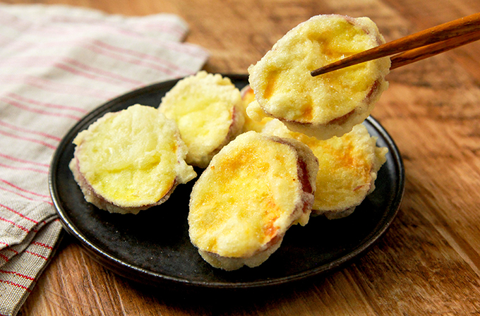 トップ レシピ〜うま味の活用〜 【さつまいものうま天ぷら】 テーマ 秋、揚げる 2025年10月10日 UP 【さつまいものうま天ぷら】 さつまいも 小麦粉 片栗粉 五十嵐 ゆかり うま味くんレシピ ●五十嵐ゆかりさん考案 食塩相当量(1人分) 0.1g うま味調味料ポイント! さつまいもがあったら迷わず作りたい美味しさ。 このさつまいものうま天ぷら、うま味調味料がさつまいもの甘味を引き立てて、何もつけなくても一つ、二つと止まらなくなります。 うま味調味料の活用術 材料2人分 さつまいも 1/2本(100g) うま味調味料 2ふり 薄力粉 小さじ1 油 適量 〈衣〉 薄力粉 大さじ3 片栗粉 大さじ1 冷水 60ml 〈仕上げ〉 うま味調味料 1ふり うま味調味料ってなんだろう? 作り方 さつまいもは斜め7mm幅に切り、水に5分程さらしたら水気を切ってキッチンペーパーで水気を拭きとる。 さつまいもの表面にうま味調味料(2ふり)、薄力粉(小さじ1)をまぶす。 ボウルに薄力粉(大さじ3)、片栗粉をふるって入れ、冷水を加えて少し粉気が残る程度に混ぜる。 フライパンの底から1.5〜2cm程度の高さまで油を入れて170℃に熱し、さつまいもを③の衣にくぐらせてから入れ、表面が固まったら上下を返して3~4分を目安に火が通るまで揚げ、油を切ってから器に盛り、うま味調味料(1ふり)をかける。 うま味応援団 料理家紹介 五十嵐ゆかりさん プロフィール・メッセージはこちら 五十嵐ゆかりさん のレシピをもっと見る 関連レシピ 【焼ききのこのうまスープ】 五十嵐ゆかりさん考案 【うまいもご飯】 五十嵐ゆかりさん考案 松茸ごはん 栗おこわ うずみ(広島) 美酒鍋(広島) いもの子汁(岩手) かぶと小えびのバター炒め 2種のきのこと野菜のみそ汁 きんぴらごぼう 大豆もやしと鶏肉の香り炒め 鶏の磯辺揚げ さつまいもの肉じゃが風 にらともやしのシャキシャキ炒め 江戸菜と豚ばら肉の炒め レシピを探す 詳しく検索 テーマ すべて 時短・簡単 減塩 郷土料理 主食 主菜 副菜 汁物 デザート レンジ ゆでる 和える 炒める 焼く 煮る 蒸す 揚げる 春 夏 冬 秋 通年 食材 すべて 馬 もち米 ごはん・米 麺 卵 果物 海藻・乾物・こんにゃく 牛 粉類 豆類・大豆加工品 豚 野菜 魚介 鶏 料理家 すべて つくりおき食堂 まりえさん 木内由紀さん 川津由紀子さん 佐藤 加奈子さん 今日のおうちごはんさん まこりんとペン子さん maina(米山真衣)さん RINATY(りなてぃ)さん おねこさん 小春(ぽかぽかびより)さん 道添明子〈あーぴん〉さん 五十嵐豪さん 五十嵐ゆかりさん ほりえさちこさん リュウジさん 渡辺あきこさん 閉じる レシピ~うま味の活用~ レシピトップ レシピ 注目!!特集レシピ ラク速ゆかりレシピ監修 うま味くんレシピ リュウジさんの 爆速レシピ ほりえさちこ先生考案 体に嬉しい減塩味噌汁レシピ ほりえさちこ先生考案 野菜が好きになる! 郷土料理コンテスト受賞作品レシピ うま味応援団一覧 うま味調味料ってなんだろう? 7月25日は「うま味調味料の日」 食育応援!お役立ち情報