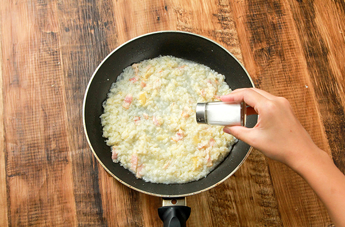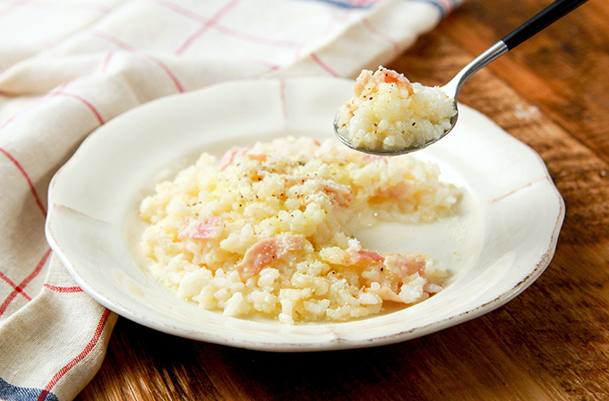 トップ レシピ〜うま味の活用〜 【ベーコンとチーズのうまリゾット】 テーマ 主食、炒める 2025年11月07日 UP 【ベーコンとチーズのうまリゾット】 ベーコン 粉チーズ にんにく 五十嵐 ゆかり うま味くんレシピ ●五十嵐ゆかりさん考案 食塩相当量(1人分) 1.3g うま味調味料ポイント! このリゾットなんでこんなに美味しいの??と驚かれる美味しさ。 実は、うま味調味料とベーコンを合わせてリゾットを作るとグルタミン酸とイノシン酸のうま味の合わせ技で抜群に美味しくなるんです。 フライパンひとつでお店の味わい作れます。 うま味調味料の活用術 材料2人分 米 80g ベーコン 1枚 オリーブ油 大さじ1 水 400ml 粉チーズ 大さじ3 おろしにんにく 小さじ1/2 うま味調味料 2ふり 塩 ひとつまみ 粉チーズ 大さじ1 黒コショウ 適量 うま味調味料ってなんだろう? 作り方 ベーコンは1cm幅に切る。 フライパンにオリーブ油を中火で熱し、ベーコンを加えて脂がでるまで炒め、米を加えて透き通るまで炒める。 水、粉チーズ、おろしにんにくを加えてずらして蓋をし、火が通るまで中火で15分程煮たらうま味調味料、塩を混ぜる。 ※途中水が足りなくなったら足してください。 ※フライパンの底が焦げないように時々軽く混ぜてください。 器に盛り、粉チーズ、黒コショウをかける。 うま味応援団 料理家紹介 五十嵐ゆかりさん プロフィール・メッセージはこちら 五十嵐ゆかりさん のレシピをもっと見る 関連レシピ 【夏に食べたい うま冷やし茶漬け】 五十嵐ゆかりさん考案 【やみつきのうま塩おにぎり】 五十嵐ゆかりさん考案 【サーモンのうまレアカツ】 五十嵐ゆかりさん考案 とろろ汁(静岡) 福山鯛うずみ(広島) 【うま醤油バターだれ餅】 五十嵐ゆかりさん考案 【鶏のうまトマトクリーム煮】 五十嵐ゆかりさん考案 【鶏肉全部これで食べたくなる美味しさなうまチキ】 五十嵐ゆかりさん考案 【うまパンコントマテ】 五十嵐ゆかりさん考案 【うま味調味料の働きでナスの美味しさが引き立つ】 五十嵐ゆかりさん考案 【梅のうま炊き込みご飯】 五十嵐ゆかりさん考案 【さっぱりうまトマト素麺】 五十嵐ゆかりさん考案 【ブロッコリーとソーセージのうまピラフ】 五十嵐ゆかりさん考案 【うま醤油おにぎり】 五十嵐ゆかりさん考案 【うまツナおにぎり】 五十嵐ゆかりさん考案 レシピを探す 詳しく検索 テーマ すべて 時短・簡単 減塩 郷土料理 主食 主菜 副菜 汁物 デザート レンジ ゆでる 和える 炒める 焼く 煮る 蒸す 揚げる 春 夏 冬 秋 通年 食材 すべて 馬 もち米 ごはん・米 麺 卵 果物 海藻・乾物・こんにゃく 牛 粉類 豆類・大豆加工品 豚 野菜 魚介 鶏 料理家 すべて つくりおき食堂 まりえさん 木内由紀さん 川津由紀子さん 佐藤 加奈子さん 今日のおうちごはんさん まこりんとペン子さん maina(米山真衣)さん RINATY(りなてぃ)さん おねこさん 小春(ぽかぽかびより)さん 道添明子〈あーぴん〉さん 五十嵐豪さん 五十嵐ゆかりさん ほりえさちこさん リュウジさん 渡辺あきこさん 閉じる レシピ~うま味の活用~ レシピトップ レシピ 注目!!特集レシピ ラク速ゆかりレシピ監修 うま味くんレシピ リュウジさんの 爆速レシピ ほりえさちこ先生考案 体に嬉しい減塩味噌汁レシピ ほりえさちこ先生考案 野菜が好きになる! 郷土料理コンテスト受賞作品レシピ うま味応援団一覧 うま味調味料ってなんだろう? 7月25日は「うま味調味料の日」 食育応援!お役立ち情報