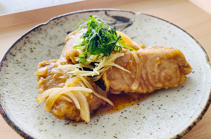 トップ レシピ〜うま味の活用〜 かつおの焼きびたし(福島) テーマ 郷土料理、減塩 2026年02月26日 UP かつおの焼きびたし(福島) しょうが 干ししいたけ かつお コンテストレシピ 郷土料理 減塩 片栗粉 ごま油 たまねぎ しそ かいわれ 福島 東北地方 食塩相当量(1人分) 1.0g 減塩率61%(対伝統レシピ) うま味調味料ポイント! •うま味調味料を加えた水に魚を漬け込むことで、臭みを軽減させた。 •スライスした玉ねぎをあらかじめうま味調味料で揉みこむことで、甘味を増強させた。 うま味調味料の活用術 ◉第10回「うま味調味料活用! 郷土料理コンテスト」2025 サステナブル賞 チーム:ひとしおLab 所属:いわき市健康づくり推進課 審査員コメント・受賞チームの味覚評価結果、受賞チームの応募用紙~郷土料理魅力PRシート~はコチラ 材料2人分 乾燥しいたけ 4g しいたけの戻し汁 大さじ1 かつおの切り身 160g 水 3/4カップ 低核酸系うま味調味料(A) 2ふり(0.2g) 片栗粉 小さじ2・1/2 サラダ油 小さじ1強 ごま油 小さじ1強 玉ねぎ 50g 低核酸系うま味調味料(B) 1ふり(0.1g) しょうが 5g しょうゆ 小さじ2 砂糖 小さじ1 酒 大さじ2 しそ 2g かいわれ大根 4g うま味調味料ってなんだろう? 作り方 乾燥しいたけは戻し、戻し汁は取っておく。 かつおの切り身を、低核酸系うま味調味料(A)を加えた水に浸す。浸した後は水気をふき取って薄切りにし、片栗粉をまぶす。 フライパンにサラダ油とごま油を適量入れ、②を両面焼く。 たまねぎをスライサー等で薄くスライスし、低核酸系うま味調味料(B)を加えて揉みこむ。しんなりしたら水気を軽くしぼる。 しょうがと、①の戻したしいたけは薄切りにする。 調味液(しいたけの戻し汁、しょうゆ、砂糖、酒)を合わせて火にかけ、ひと煮立ちしたところに④、⑤を加えて味を染み込ませる。 器に③のかつおを盛りつけ、上に⑥、刻んだしそ、かいわれ大根をのせる。 〈伝統レシピの調理手順〉 ①⑤乾燥しいたけ及びその戻し汁を活用し、調味液の重量調整並びに旨味の相乗効果を図った。 ②伝統的な調理手順では魚を素焼き(素揚げ)にしていたが、調味液が染み込みやすいよう、片栗粉をまぶした。 ③魚の風味付けにごま油を追加した。 ⑥⑦伝統的な調理手順は、魚を調味液に漬け込む手法であったが、たまねぎ・しょうが・しいたけに味を染み込ませ、魚へ後がけをすることで、使用する調味液自体の減量を図った。 関連レシピ しもつかれ(栃木) いものこ汁(秋田) 味噌煮込みうどん(愛知) 蒜山おこわ(岡山) 鍛冶屋鍋(兵庫) とろろ汁(静岡) はす蒸し(石川) 福山鯛うずみ(広島) サメの納豆汁(秋田) 鯉こく(長野) 青森県三戸郡 ひっつみ汁(青森) 中身汁(沖縄県) ひゅうが飯(愛媛県) 根曲がり竹のみそ汁(長野県) 馬かやき(秋田県) レシピを探す 詳しく検索 テーマ すべて 時短・簡単 減塩 郷土料理 主食 主菜 副菜 汁物 デザート レンジ ゆでる 和える 炒める 焼く 煮る 蒸す 揚げる 春 夏 冬 秋 通年 食材 すべて 馬 もち米 ごはん・米 麺 卵 果物 海藻・乾物・こんにゃく 牛 粉類 豆類・大豆加工品 豚 野菜 魚介 鶏 料理家 すべて つくりおき食堂 まりえさん 木内由紀さん 川津由紀子さん 佐藤 加奈子さん 今日のおうちごはんさん まこりんとペン子さん maina(米山真衣)さん RINATY(りなてぃ)さん おねこさん 小春(ぽかぽかびより)さん 道添明子〈あーぴん〉さん 五十嵐豪さん 五十嵐ゆかりさん ほりえさちこさん リュウジさん 渡辺あきこさん 閉じる レシピ~うま味の活用~ レシピトップ レシピ 注目!!特集レシピ ラク速ゆかりレシピ監修 うま味くんレシピ リュウジさんの 爆速レシピ ほりえさちこ先生考案 体に嬉しい減塩味噌汁レシピ ほりえさちこ先生考案 野菜が好きになる! 郷土料理コンテスト受賞作品レシピ うま味応援団一覧 うま味調味料ってなんだろう? 7月25日は「うま味調味料の日」 食育応援!お役立ち情報